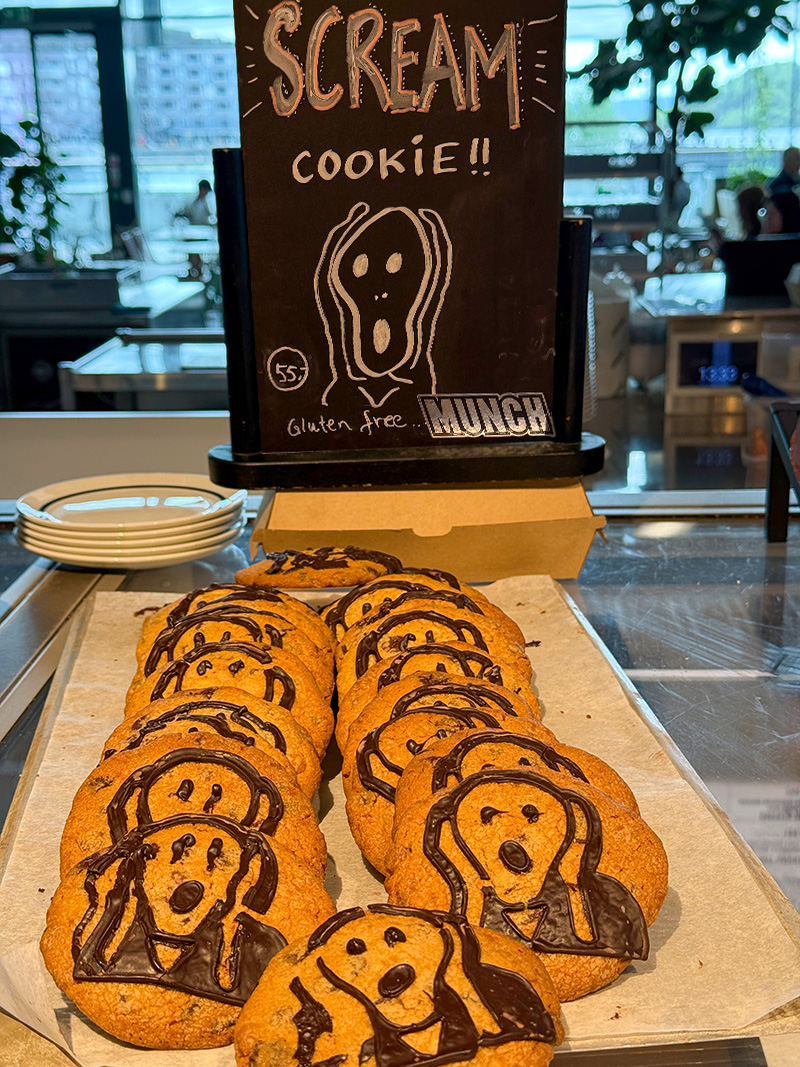 Le bar et le restaurant du musée proposent un Munch Burger et des cookies 😱 qui font justement Skrik sous la dent ! Ça vous tente ?