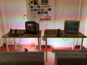 Des décors de chambres et salons des années 1970 et 80 montrent ces reliques ludiques dans leur habitat naturel recouvert de moquette. Les ordinateurs laissent petit à petit leur place aux consoles, NES, Megadrive, des plus rares ou d’improbables modèles quasi oubliés, avant de monter au deuxième étage qui est majoritairement dédié aux consoles « modernes ».